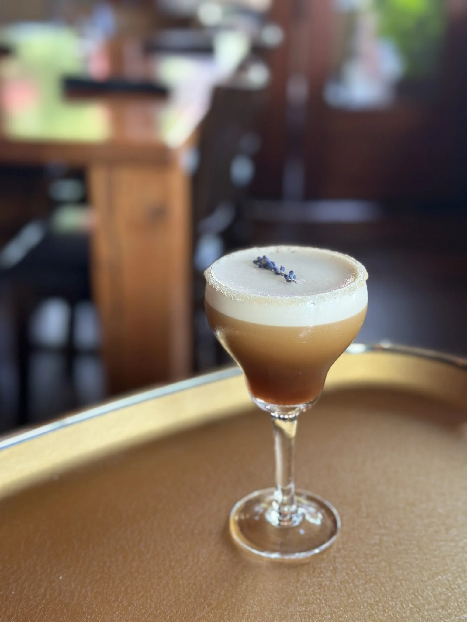 Garnishes : dehydrated citrus wheels, brandied cherries, edible flowers, citrus zests, castelvetrano olives, and fresh/dried herbs and spices.